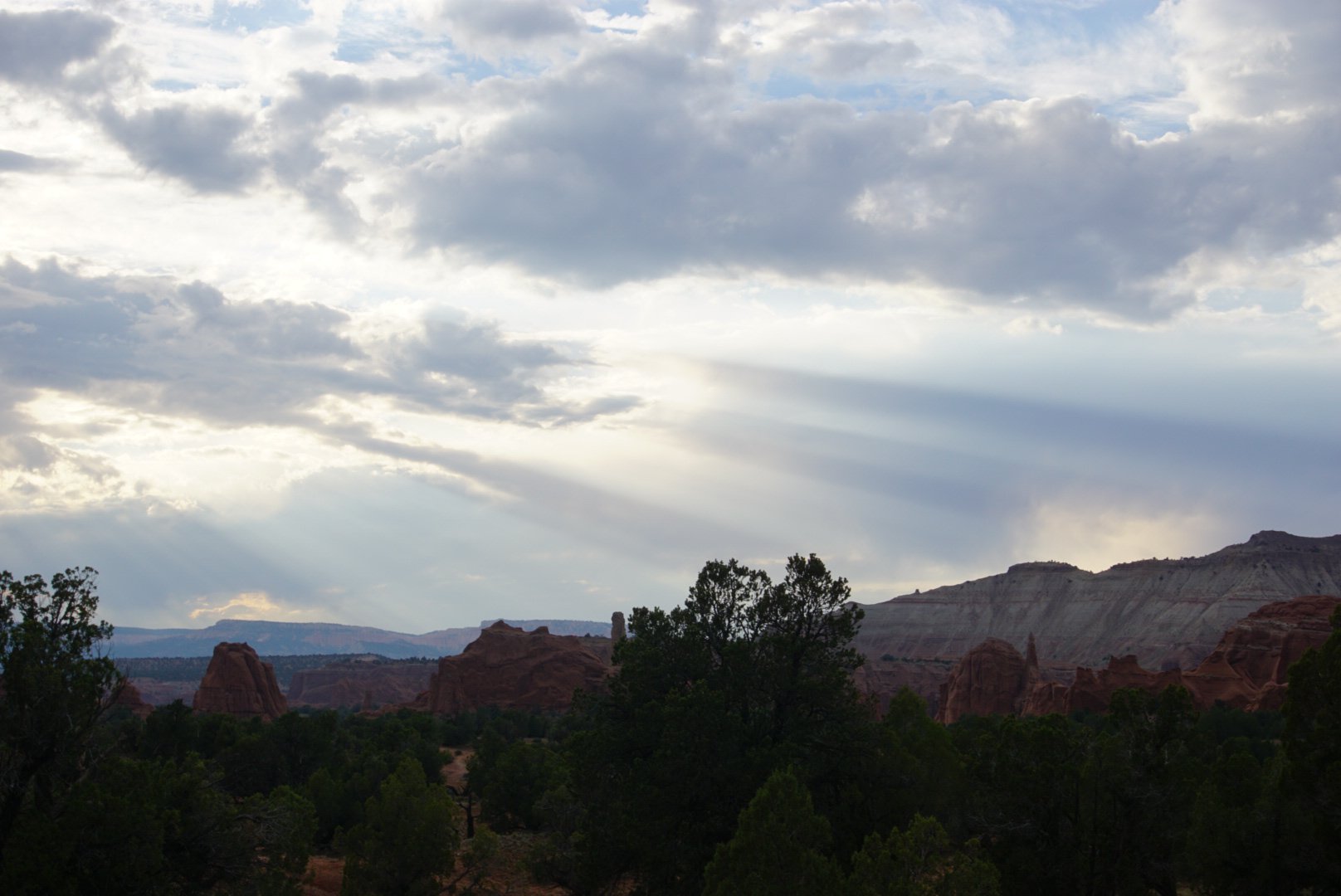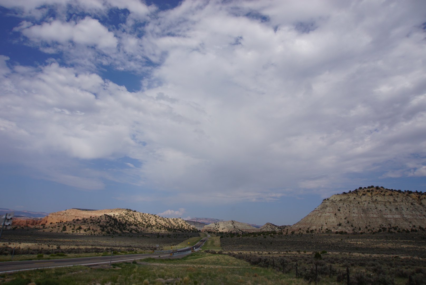 Nous avons traversé Henrieville et Cannonville qui n’ont de ville que leur nom. Une chance qu’on doit ralentir en les traversant car autrement on passerait sans vraiment s’en rendre compte. Nous sommes réellement dans la grande campagne (désertique/rocheuse) du Utah.
