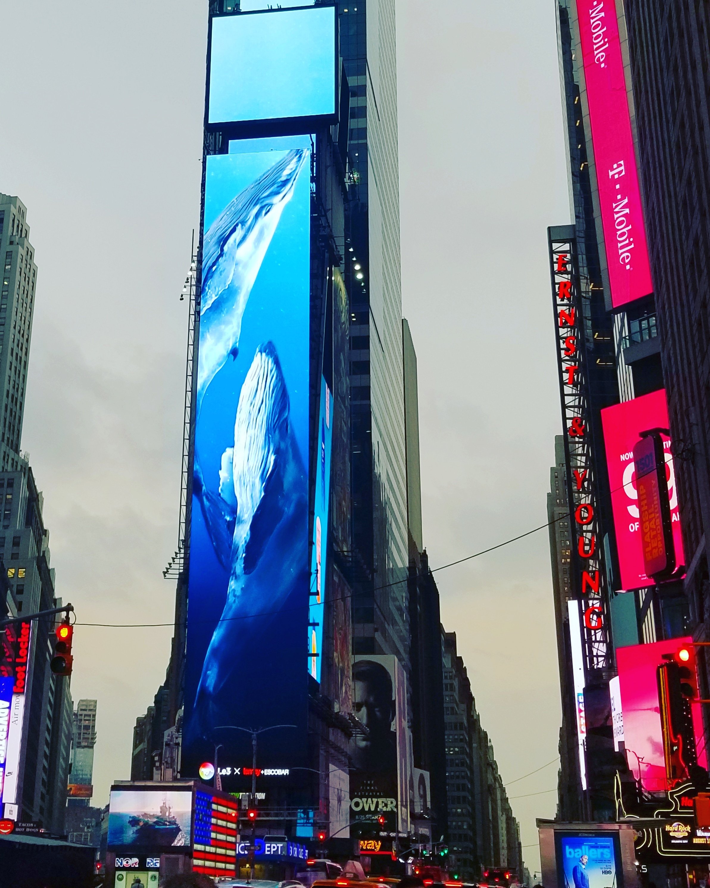 Et des baleines sur un écran géant vertical à Time Square!!!!
