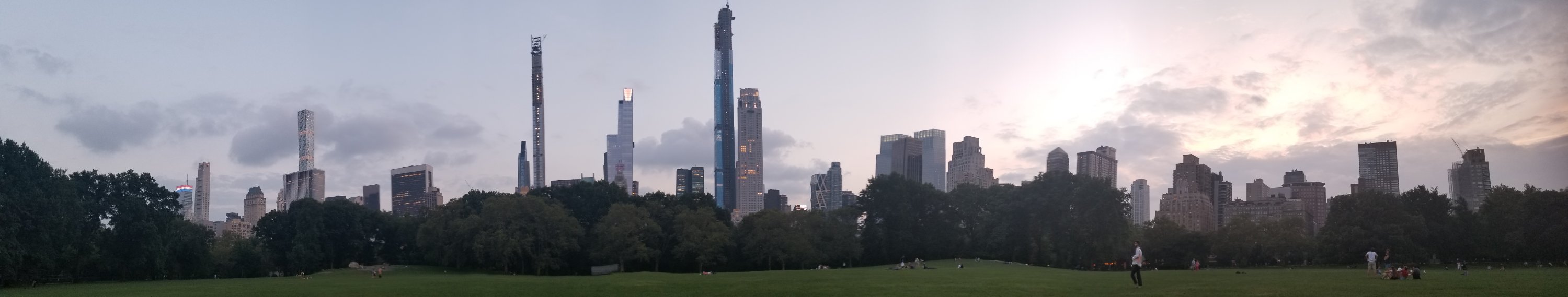 Et que font les newyorkers pour digerer leur souper? Une marche dans Central Park voyons! Ça tombe bien, nous avions décidé de passer par là puisqu’il est notre voisin d’hotel! Tranquillement, en regardant les joggeux et les mémèreux au cellulaire, nous avons repris le chemin de la maison.Le Sheep Meadow (grande plaine herbeuse identifiée comme quiet place… décidément est-ce le signe d’un besoin d’oasis exempt de bruits???) nous a invitées à arrêter pour contempler le skyline de New York et à planter nos orteils dans le beau gazon bien vert. Génial!