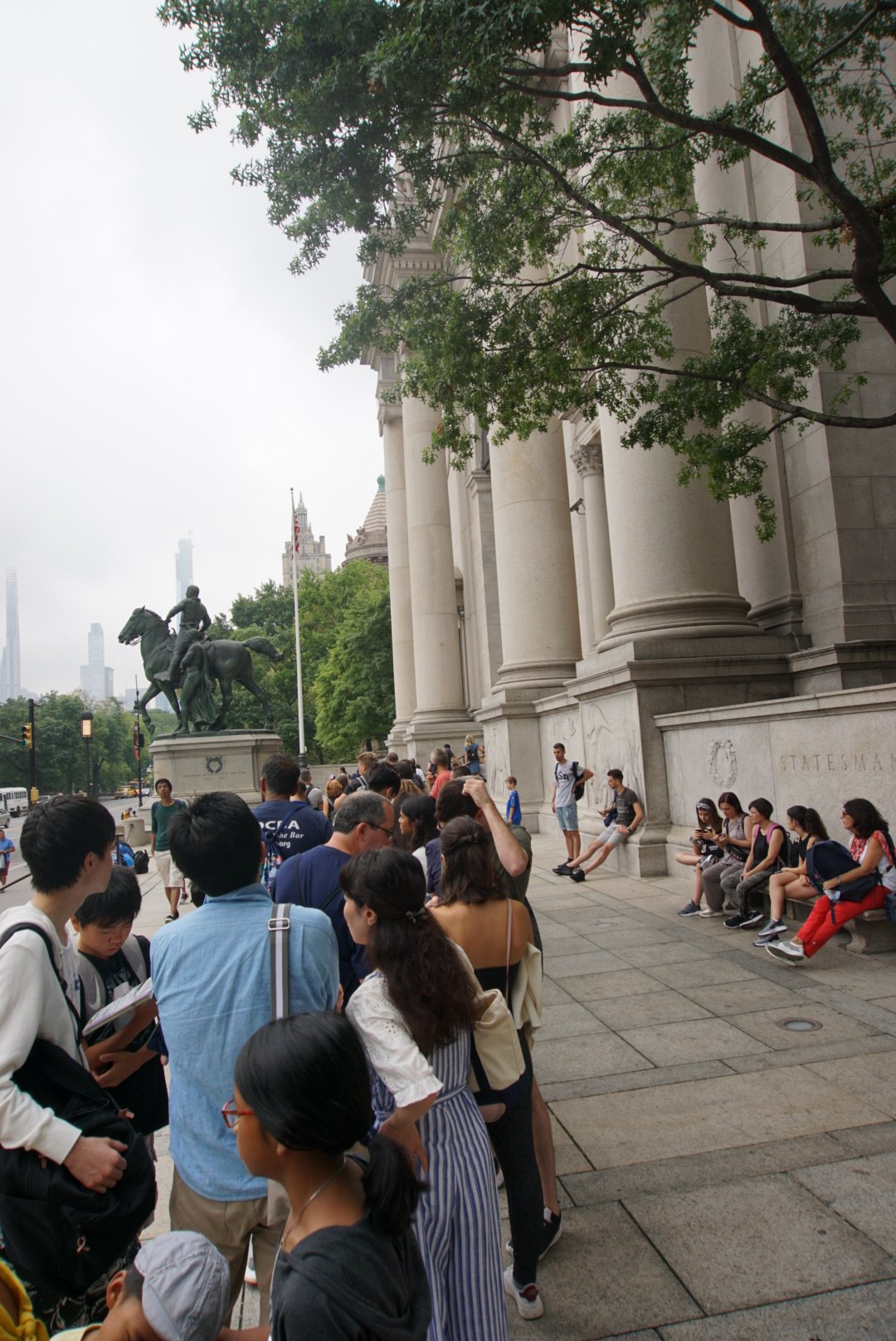 Les amis, nous avons une chance qui ne se raconte pas!!! Alors vous ne le saurez pas!! Mouhahahah!! Ben non!!Mais avant, laissez-moi vous parler de deux points que j’avais oubliés.D’abord le Y. Finalement c’est vraiment un bon plan cet endroit. Pas compliqué, au centre de tout, et la douche est vraiment très bonne (ce que n’est pas négligeable après une journée de marche collante et poussiéreuse dans NYC). En fait, il s’agit de salles de bain complètes avec toilette, lavabo et douche. Il y en a au moins une bonne dizaine par étage ce qui fait qu’il y en a toujours une de dispo. J’avais lu des commentaires sur l’eau, pas assez chaude, pas assez de débit. Ben c’est pas vrai.Autre détail, le lit est très confo et de toute façon, après une journée de visite, n’importe quel lit est bon. Mais celui là l’est vraiment!Autre chose, je ne vous ai pas dit que chez Wholefoods, il y avait 45 (quarante-cinq, forty five, quarenta y cinco) caisses avec 45 madames* prêtes à vous faire payer. À 20:30, il y avait un line up pour ces caisses!!!!!!!! Un système de dispatch très efficace permettait d’avoir 12 files d’attente qui se vident rapidement. La démesure!Alors, sans plus vous faire attendre, quelle est cette chance inouïe? En fait, elle est le résultat d’une malchance!!Ce matin, je décide d’acheter nos billets pour le musée d’histoire naturelle (AMNH) en ligne. Je prends le forfait all-in (on veut toutte voir bon). Paie, confirmation à l’ecran avec numero ID de billet et envoi au email. Sauf que je ne reçoit rien…… bon…. J’avais pris la page en photo (vieille habitude d’anxieuse).Alors on prend notre petite marche vers le musée. On est pas pressées, le musée ouvre à 10:00. Je me suis dit que si on arrivait 30 minutes en avance, on serait ok. J’avais aussi en tête que j’aurais à debattre pour avoir mes billets (au moins aller voir la madame au comptoire…)