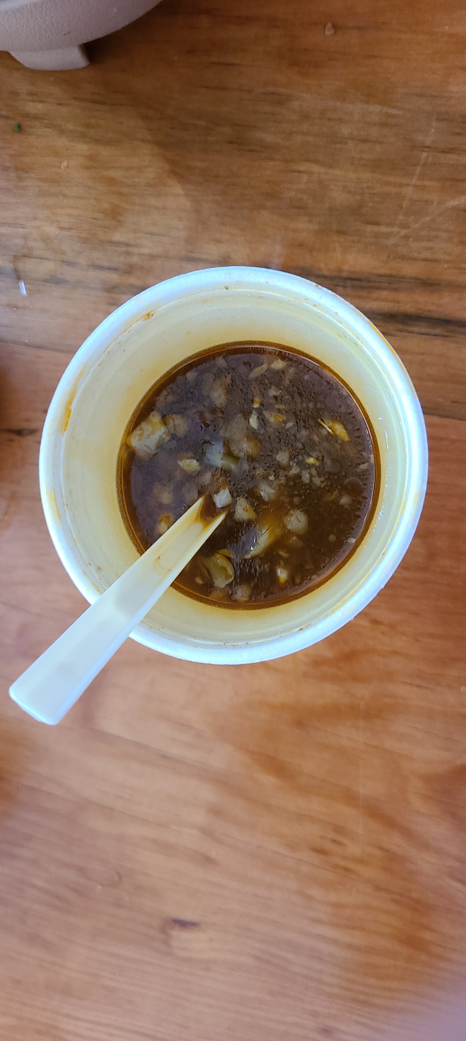 Alors la Birrieria Robles, mes amis, c’est une coche au-dessus! Wow! Même chose au menu qu’hier, c’est à dire des birria dorado (trempettés dans le bouillon et frits) ou blando (sur la plaque). Au boeuf (pas de chèvre encore aujourd’hui) cuit dans un bouillon. Apprêté avec du chou et des oignons coupés petits. On y met de la salsa verde, de la sauce piquante et on peut aussi ajouter du bouillon. Ceux ci sont extraordinaires. D’ailleurs, le bouillon se prend aussi à la cuillère et il est succulent!!