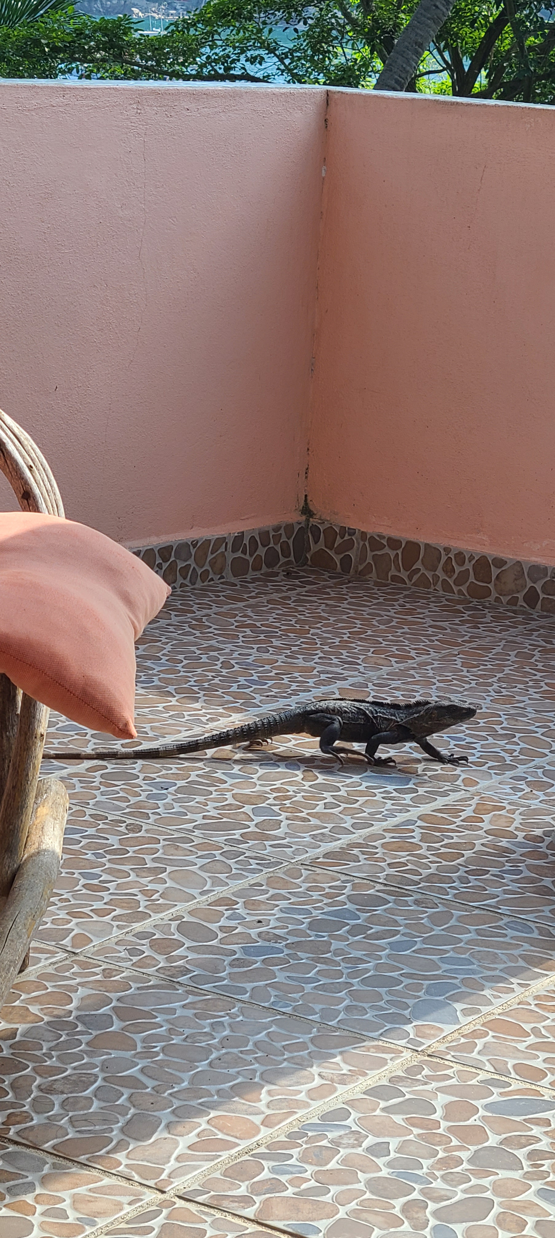Sacha et moi avons fait connaissance avec un beau gros lézard qui est venu nous faire un beau gros cadeau sur la terrasse (comprendre un #2). Plus il avançait vers moi, plus je sentais la moumounitude m’attaquer! Sacha elle, pff, elle lui parlait et l’encouragent à aller prendre son bovril plus loin! À deux millimètres de lui aaarrgghhh!!!