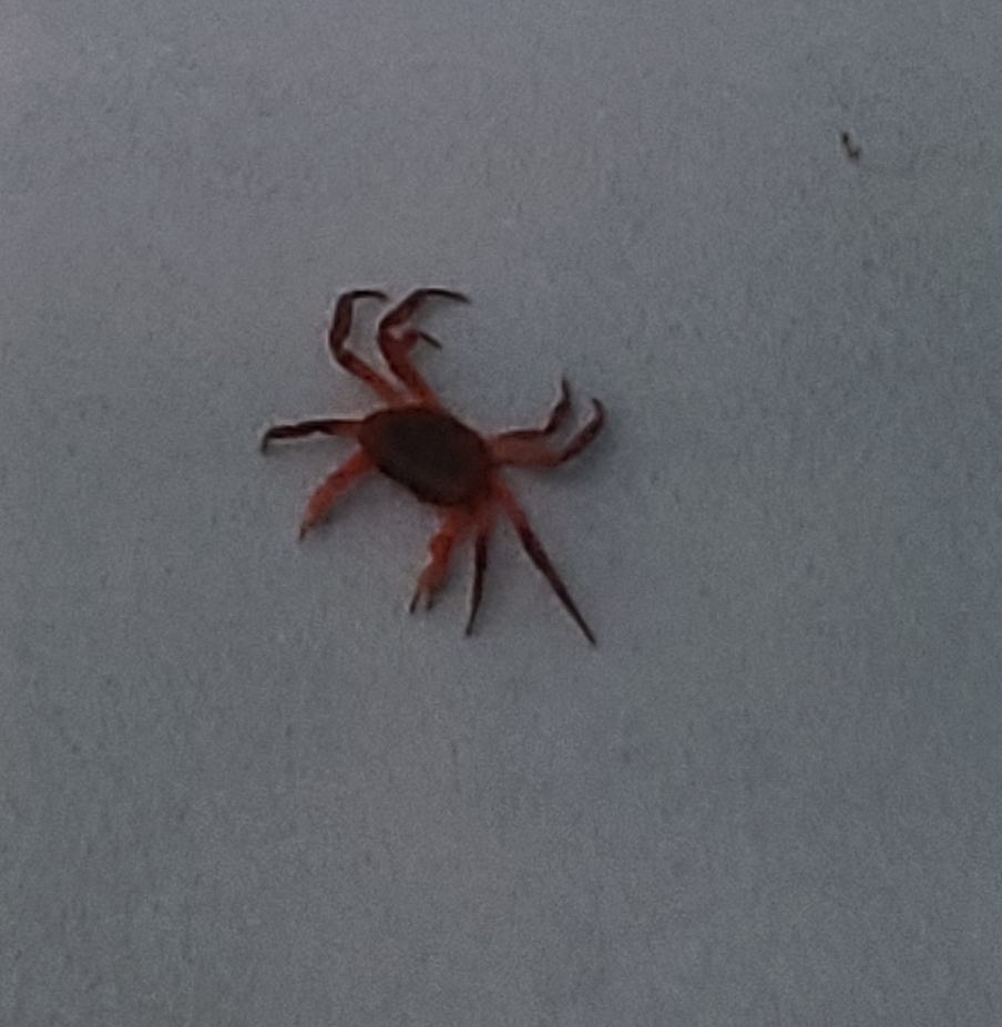 Jael s’est fait un ami, un beau gros crabe à passé la nuit sur le mur de sa chambre. Un crabe d’au moins 2 pouces de large, rouge et immobile. On se demande comment il fait pour tenir sur le mur et plus tard sur le plafond. Ah les wonders of de nature!