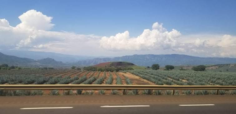 Et puis quoi? Des champs à perte de vue d’agaves bleues. (Juste comme ça, vous savez que la vraie tequila est faite d’agave bleue? Celle-ci ne pousse qu’en Jalisco, province de Gdl et de la ville deTequila (vous voyez le lien?). D’ailleurs, plus on approche de Tequila et plus ce ne sont que des champs bleus! J’étais un peu perplexe car j’avais vraiment l’impression que les plants étaient tous petits…. soudain qu’ai-je vu dans un champ qui m’a fait remettre ma perspective à l’ordre? Un cheval. Entre deux rangs d’agaves. Et il était minuscule!!! Il était perdu dans les plants et on ne voyait que sa tête dépasser! Wow!