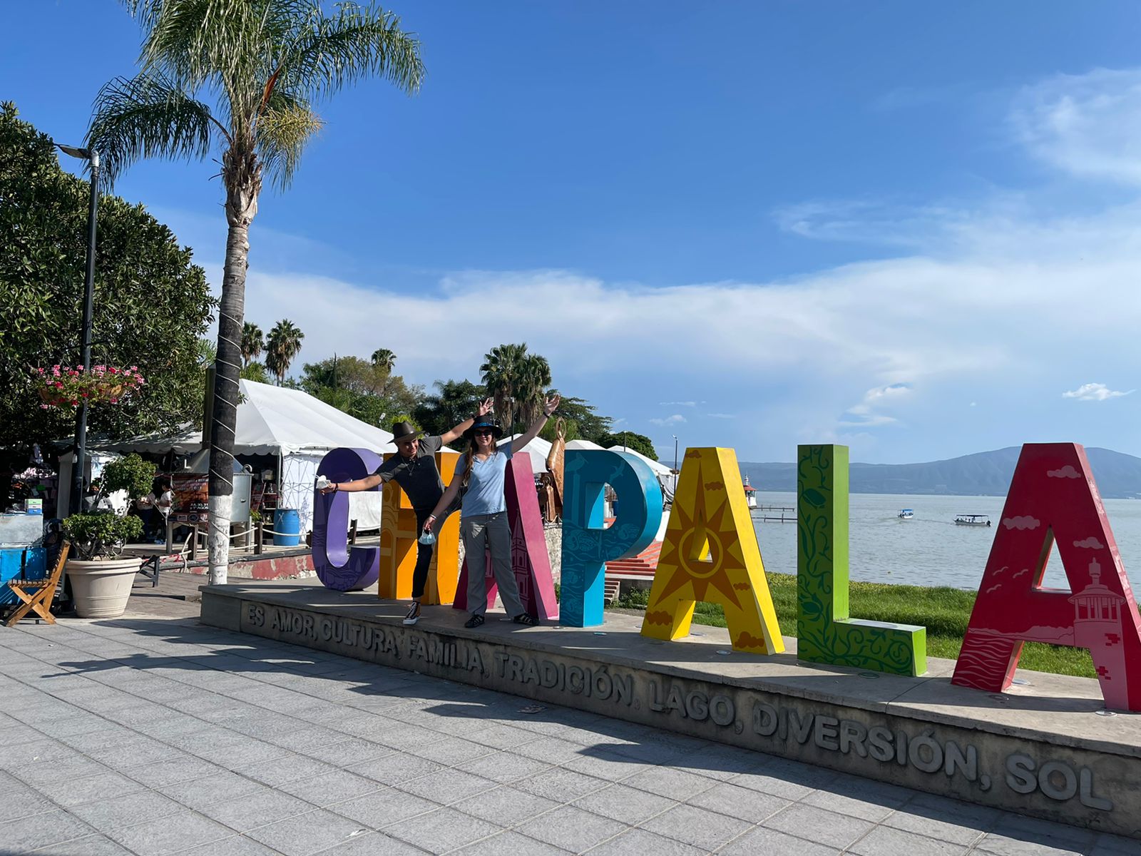 Finalement, Chapala, c’est bourré de gens, y a un festival de mariachi. On ne reste pas trop longtemps mais assez pour prendre une photo réglementaire avec le signe multicolore de la ville. Signe qu’on trouve dans toutes les villes du Mexique.