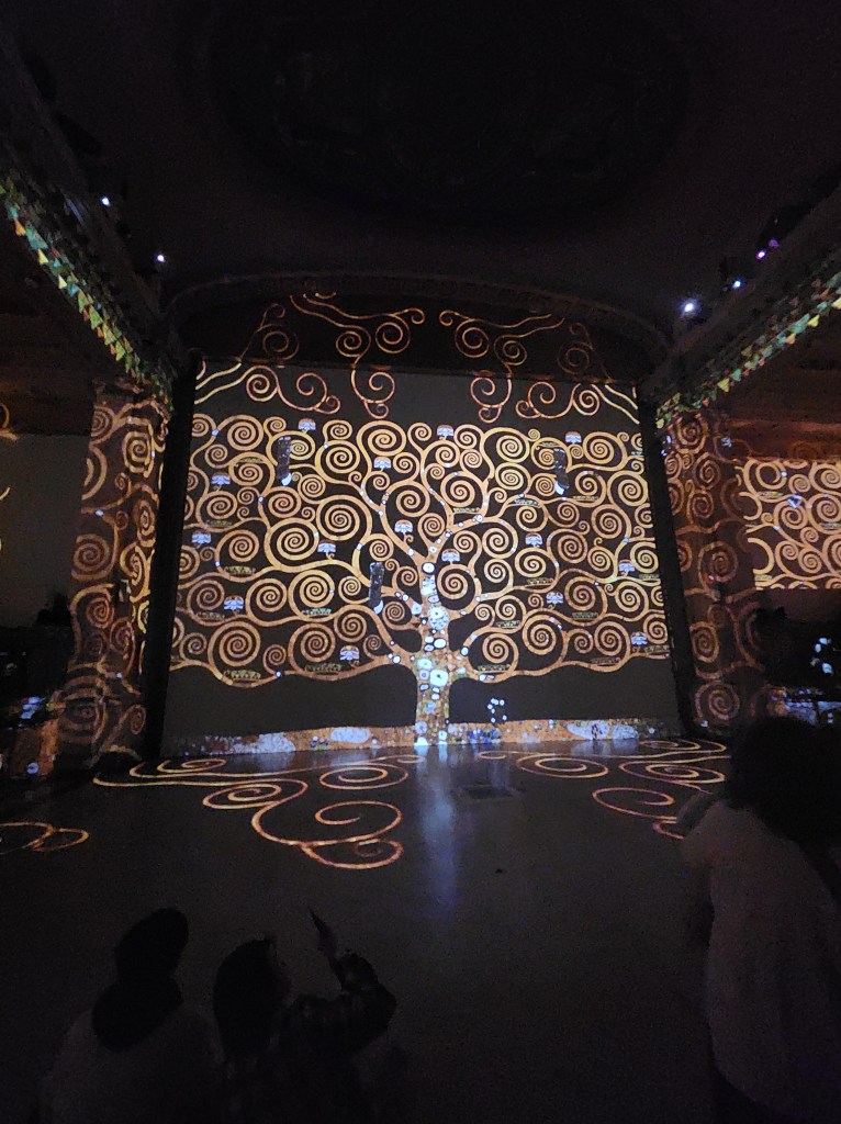 L’exposition? Intéressante mais finalement similaire à toutes ces expositions immersives. On projette sur les murs, on joue aussi avec l’architecture de l’endroit dans les projections. On met de la bonne musique et on laisse les gens regarder. C’était très bien et ça m’a permis de connaître d’autres facettes de Klimt. Mais, car il y a toujours un mais!
