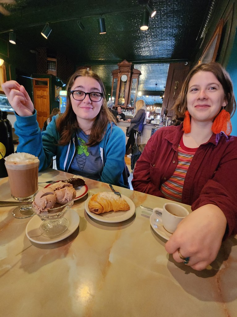 La suite? Dessert et café au café Roma dans la petite Italie. C’est l’endroit où je suis toujours retournée à chaque fois que je suis venue à NYC. Café Roma, quel bel endroit. Quel bon café! On ne repassera pas pour les canolis, pas très fan…mais les dames sont très sympathiques et italiennes. Et nous relaxons en regardant les gens arriver et partir.
