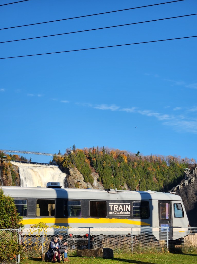 Après avoir donné mes instructions à la gardienne de chiens (surtout pour Alice qui est encore en convalescence) on se dirige vers les chutes Montmorency, d’où on prend le train.