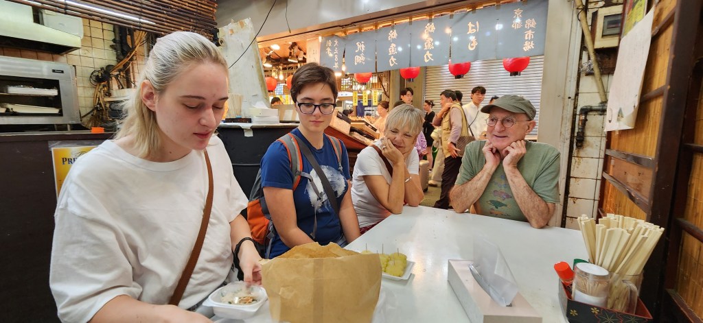 Mais avant, nous avions rvs avec CJ, une expat de très longue date, guide de son état, pour un food tour dans le marché Nishiki. Marché établi depuis les années 700. Calcul rapide: 1300 années d’histoire!