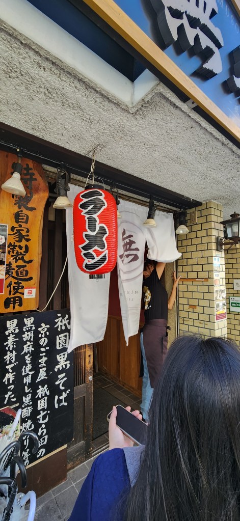 Il y a 1000 ans, les tissus devant la porte d’entrée servaient à essuyer la bouche des gens qui quittaient le restaurant! Beurk! Mais aussi, si le tissu est baissé, ça veut dire que le restaurant est ouvert. C’est encore utilisé à Kyoto, le rideau est baissé pour l’ouverture du resto. On ne fait plus le nettoyage de la bouche par exemple!!