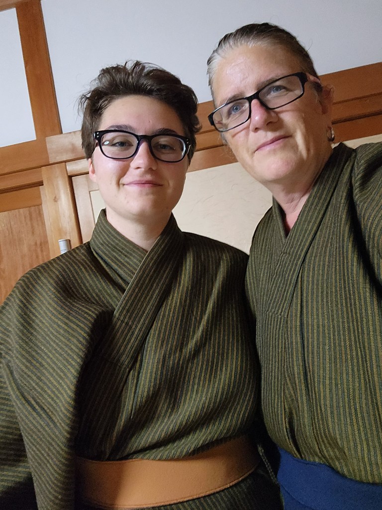 S’habiller comme eux: après le bain, enfiler le yukata (robe de chambre japonaise) et le yukata doublé et lourd (parce qu’il fait froid).