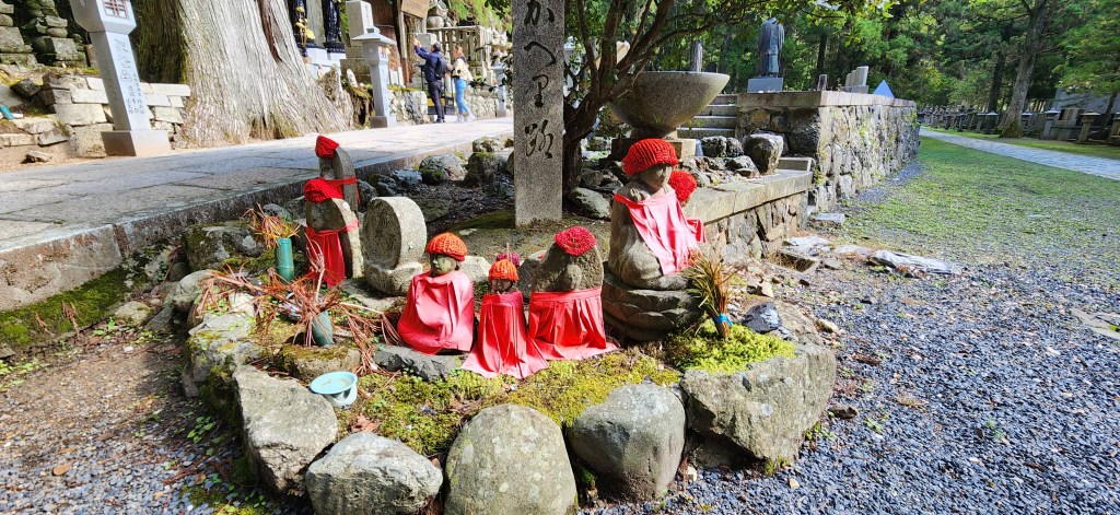 Nous avons aussi rencontré Jizō, le protecteur des voyageurs mais aussi des enfants. Rappelez-vous la photo avec des bouddha avec des bavettes rouges? C’est Jizō. Les gens leurs mettent des bavettes en leur demandant de protéger leur enfant. Et on retrouve Jizō partout le long des routes.