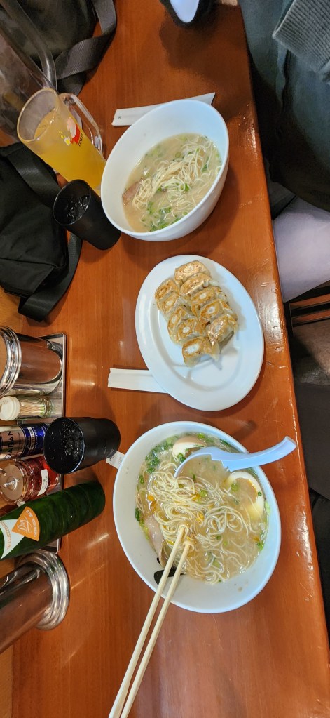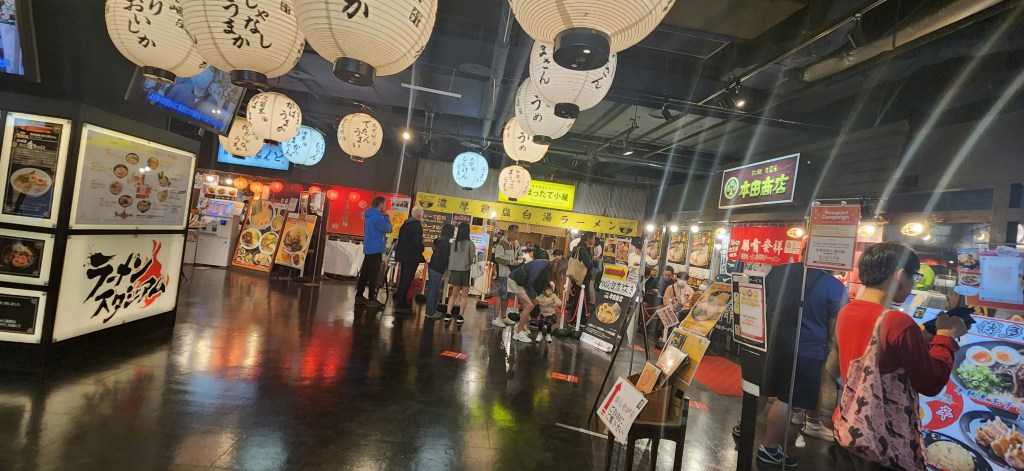 Premier test de Suzu, le Ramen stadium! Eille, les ramens c’est du sérieux en motadit. On a vu le musée et là, on se retrouve au Stadium! En fait, il s’agit d’un centre d’achats où un étage est dédié aux ramens. On s’est retrouvées dans un petit resto sympa avec, encore une fois, que des japonais autour. Et encore cette fois-ci, il fallait pitonner notre commande et payer à la machine qui, en échange, nous a donné un petit papier en japonais correspondant à notre commande. On a stationné Suzu dans un stationnement payant juste à côté.