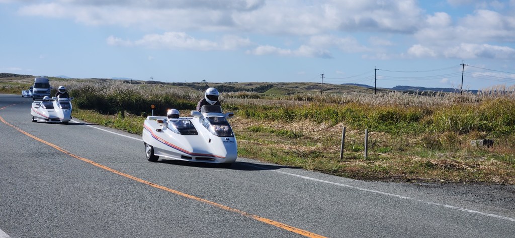 On a vu aussi des motos avec des sidecar intégrés assez inédits. Une genre de coque pleine sur tout l’engin. Les monsieur semblaient assez fiers de leur engin et de promener leur madame dedans je vous dis!