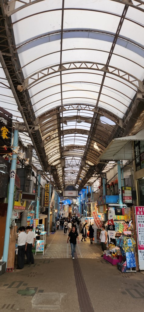 On prend une petite marche, comme on aime les faire, pour se rendre tranquillement au marché public de poisson de Naha. Chemin faisant, on se retrouve encore dans un « mail st-roch » bordé de multitude de commerces de tout genres.