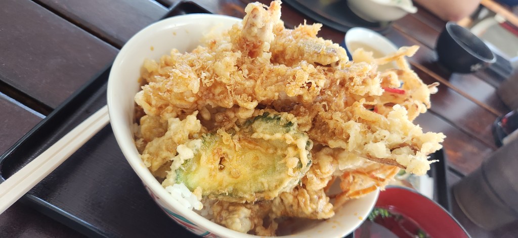 Le crevettes gigantesques étaient d’une fraîcheur! Vraiment, la première bouchée m’a conquise complétement. Délicieux ce plat! Sacha, de son côté, un peu déçue de sa soupe. On était surprises, ce n’était pas une soupe au poissons mais peut-être le bouillon. Oh well! L’aventure au Japon c’est ça aussi!