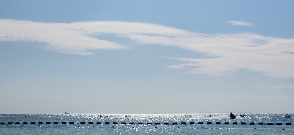La route pour se rendre à Onna est courte, on décide de faire quelques arrêts pour agrémenter notre après-midi. À la playa, une plage pas très populeuse mais on peut supposer qu’elle l’est en saison forte avec ses jeux gonflables et toute l’organisation.
