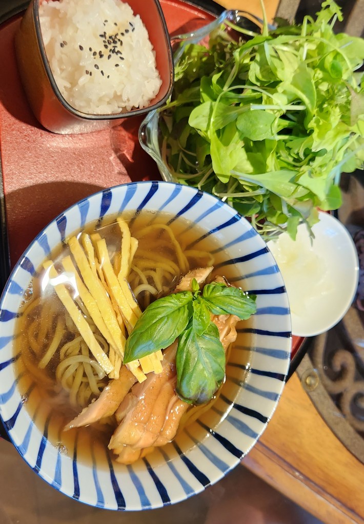 Nous étions bouleversées par cette histoire, Sacha et moi, et nous avions vraiment faim aussi. Je nous ai dégotté ce petit resto qui semblait bien joli pas trop loin de là. On se fait accueillir par cette jolie dame, tout sourires et empressements chaleureux. Le resto ne paie pas de mine et ne propose que deux repas. On opte pour la soupe ramen, toujours winners chez les Lebel et Lebel.