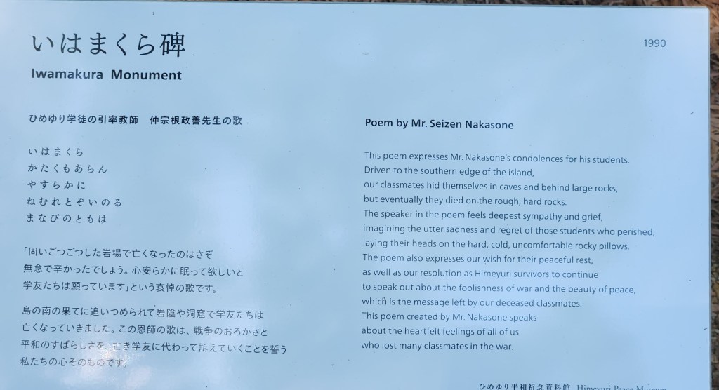 Je n’avais pas vraiment l’intention de visiter des sites de la guerre. Mais en regardant la carte du bout sud, nous sommes tombées sur un memorial spécial. Le musée de la paix Himeyuri à Itoman.