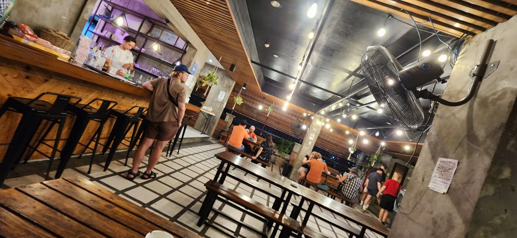 Le barman est très généreux dans ses onces aussi. Après deux drinks, je me sens heureuse et relaxe. On se fait un petit souper sur la terrasse aussi. C’est bien d’avoir tout, tout près. La nuit noire tombe à 17:00. Pas le goût d’explorer Manille dans le noir.