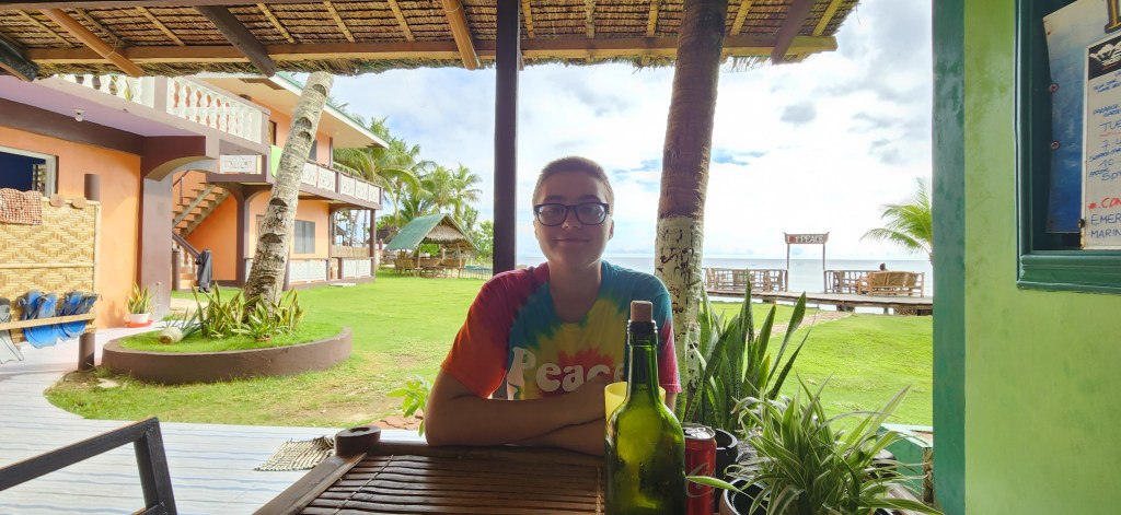 Nous sommes au 1Peace resort. Un mini resort de quelques chambres. Tenu par un français. J’ai trouvé ce lieu à travers le groupe Facebook des francophones aux Philippines. Les gens étaient dithyrambiques. Pas eu le choix.