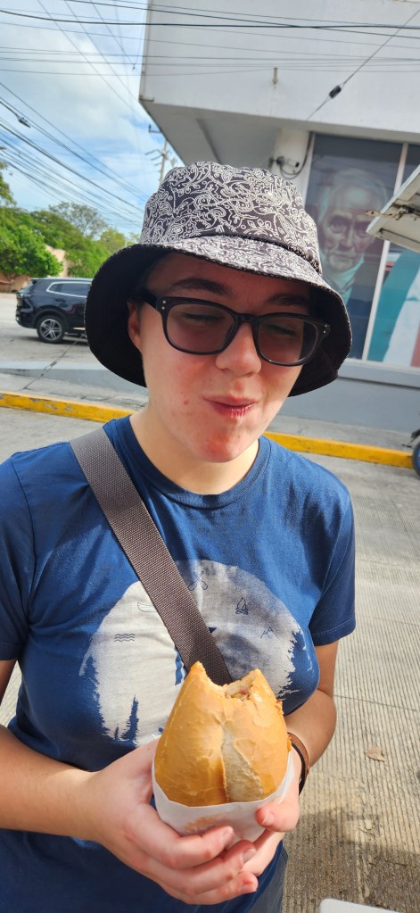 Ben voyons! On mange des tacos! Mais pas n’importe quels. Des cochinita pibil. Et dans la rue svp! La viande bien mijotée est accompagnée de tortillas ou de torta (petit pain oval). « To die for » comme on dit. Omg qu’on était contente de se farcir de tacos enfin!