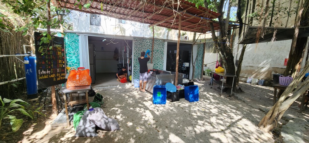 C’est aussi une journée poutine. Une lavaderia pour nos vêtements. Un lieu cool tout de même avec des tables pour chiller en attendant notre brassée. Mais comme on a des vêtements de plusieurs couleurs, on doit utiliser deux machines. Ça nous revient un peut trop cher à mon goût. Même la dame de l’hôtel n’est pas impressionnée. Nos maigres 4gk de vêtements, 140 pesos… j’aurais pas payé ça au Québec je crois. Un peu fâchée la fille….