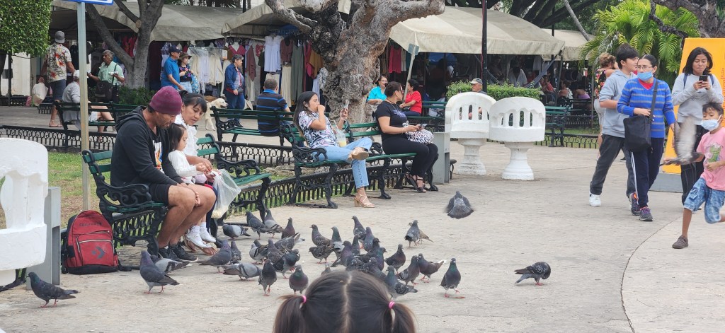 Je ne savais pas mais il y a des mennonites à Mérida! Une sous catégorie des Amish je crois mais moins stricts sur les technos. Tout de même, c’est bizarre de voir des femmes en robe d’époque avec un foulard sur la tête et des hommes en salopette avec un chapeau de cowboy, au Mexique. J’ai rien contre ça, c’est juste bizarre, ça clash si on veut par rapport aux Mexicains.