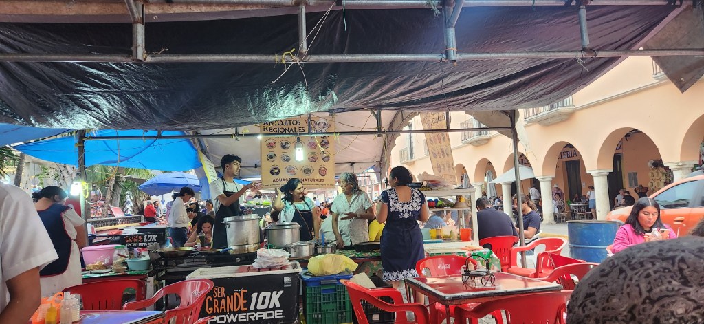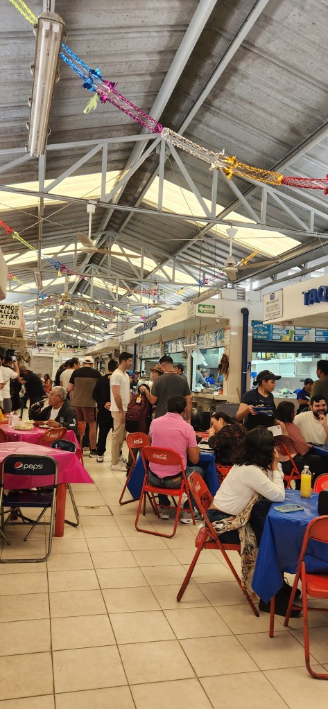 On s’est retrouvées autour d’un petit mercado municipal tout mimi mais même à 9:00 un dimanche matin, y a de la vie!! Plein de petits restos sont ouverts et servent plein de gens, tacos et tout le bataclan. Le brunch du dimanche avant la messe! Wow c’est cool ça!