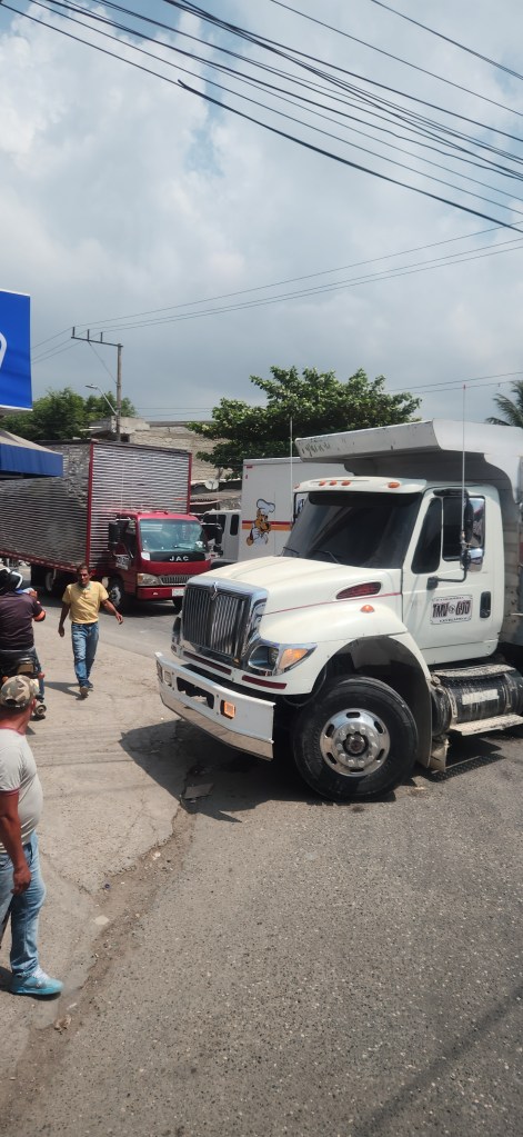 On part pour la première portion du trajet (Cartagena-Barranquilla). Nous avons peut-être 30 minutes de trajet de fait, l’autobus arrête. Bouge pas. Est immobile. Y a rien qui avance…. 30 minutes, 40 minutes…. finalement le chauffeur décide de contourner le problème. On saura quelques minutes plus tard que c’est un camion qui bloque complètement la route.