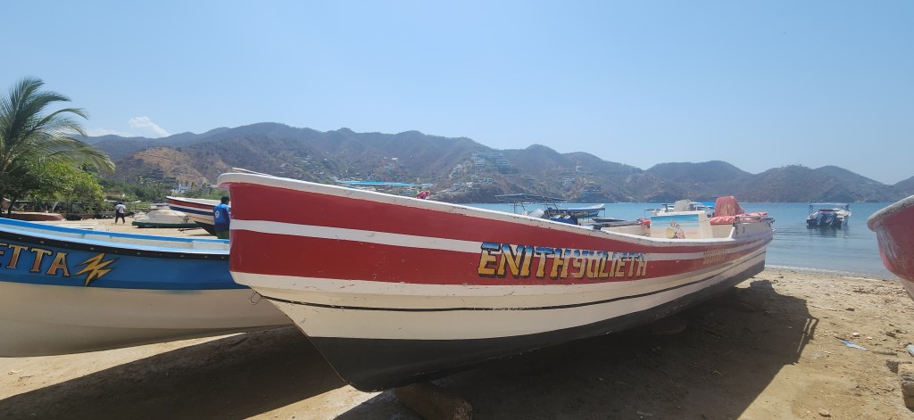 Taganga, un petit village de pêcheurs, tout coincé dans une anse et entre des flancs montagneux. Une anse bien arrondie, avec une petite plage tout au long.