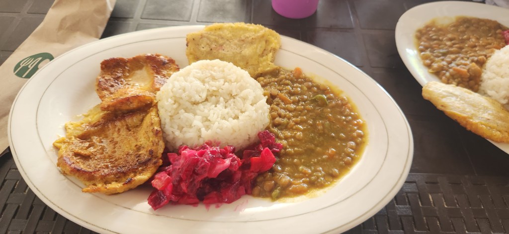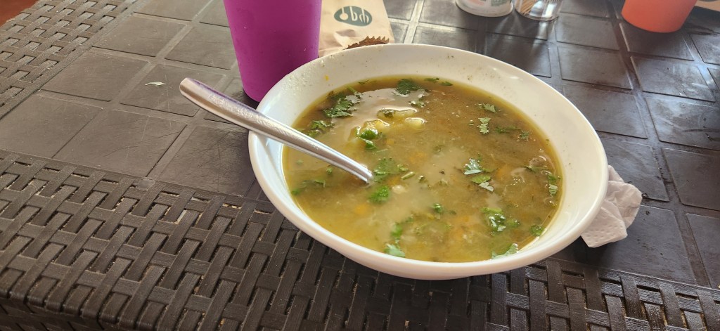 Nous jetons notre dévolu sur un petit resto ultra local qui offre la comida del dia comme on l’aime. La soupe est pleine de patates. Et elles sont tellement bonnes! La chair des patates est fine et douce. Avec un petit goût de je ne sais quoi qui est vraiment tellement bon. Je n’ai jamais été une maniaque de patates mais c’est une découverte ici en Colombie. Elles sont délicieuses.