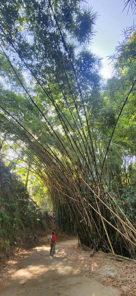 Et soudainement, nous tombons sur ces gigantesques bosquets de bambous! Wow!! Je ne saurais dire pourquoi mais les bambous me fascinent. Un arbre pas arbre, tellement solide, pourtant constitué d’un tube, le centre vide. Et ils poussent en tapons bien serrés. Facile de les voir de loin, ils ont un feuillage très distinctif. Un tapon froufroutant. Vous voyez ce que je veux dire?