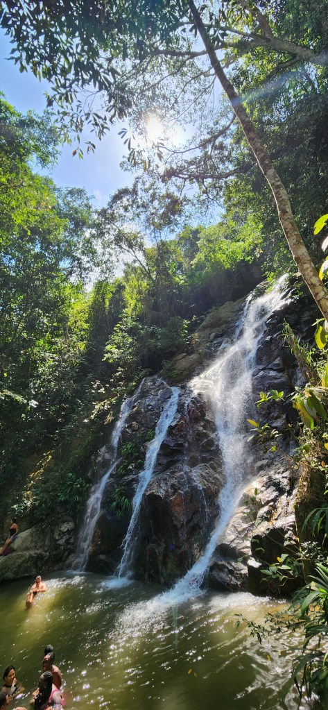 Une fois les photos obligatoires faites, nous allons la cascade 1. Celle ci est déjà investie de plusieurs personnes. Le site est plus large et le bassin au pied de la cascade est baignable.