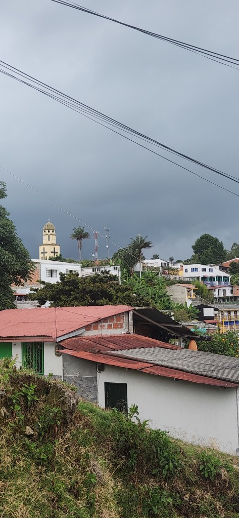 Nous sommes parties de l’hôtel à Pereira à l’heure pile du check out. Je me demande d’ailleurs ce que pensent les hôtels de ces voyageurs qui profitent jusqu’à la dernière goutte de leur chambre d’hôtel. Ils doivent espérer que les gens quittent plus tôt.