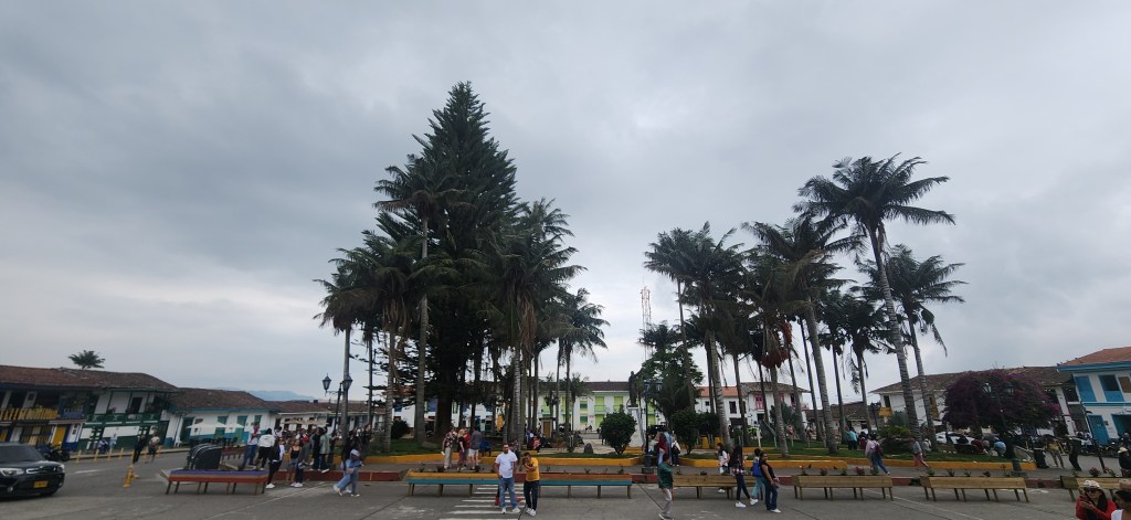 Pour l’occasion, le square, la place centrale de la ville, est fermé à la circulation. À l’exception des jeep wrangler qui font encore la navette entre la vallée de Cocora et d’autres sites. Toute la journée, une parade incessante de jeeps colorés et de gens accrochés au toit.