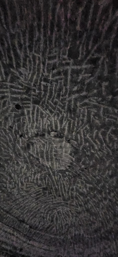 Mais je vous rassure, les plafonds sont hauts!! C’est même impressionnant de voir ces gigantesques salles, corridors, aussi grands et élevés. On peut imaginer qu’on pourrait construire à certains endroits des édifices de 3-4 étages! Et les traces, les marques sur la roche nous rappelle que ces galeries ont toutes été creusées à main d’homme! Avec des outils puissants oui, mais tout de même à main d’homme!