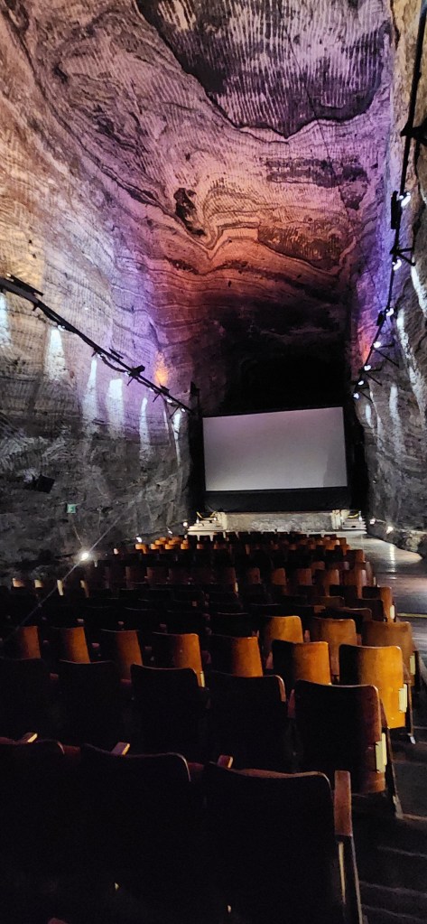 L’information que je recherche, je l’aurai par un film qui nous est proposé dans une belle grande salle de cinéma. N’oubliez pas, tout ça, c’est sous terre, dans une mine de sel!!!