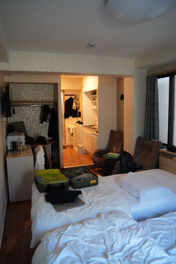 Il est 17:30, madame-monsieur sont pressés de renter chez eux, le métro grouille de monde et nous on a nos valise-sac à dos et on sait pas trop où on va. On bloque le flot, on est pas flotdynamiques tsé avec nos grosses affaires. Mais on a fini par se rendre à notre petit studio tout rikiki, bien représentatif de la minititude des appartements dans cette ville où le pouce carré coûte 2 bras c’est certain.
