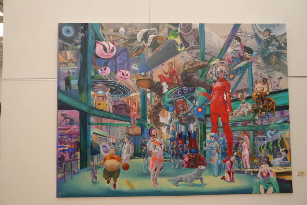Oh là là, je m’emporte! Les toiles sont pour la plupart d’artistes japonais. Plus ou moins émergents. Très intéressant de voir la vision qu’ils ont de l’art, de la vie, du futur, de la nature. Des fois, ce n’est vraiment pas rose mais ailleurs, l’espoir, la beauté, l’amour est là.